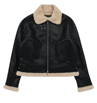 아크메드라비 HIGH NECK VEGAN LEATHER MOUTON JACKET BLACK