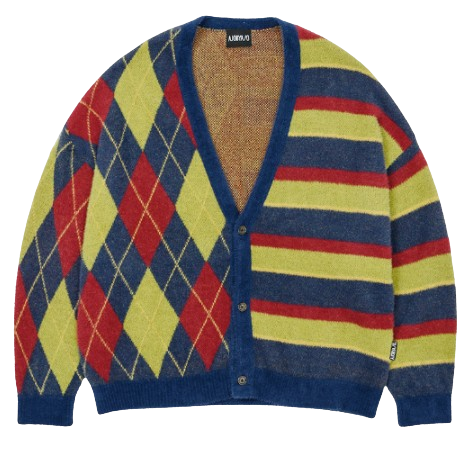 Argyle Stripe Mixed Cardigan NAVY