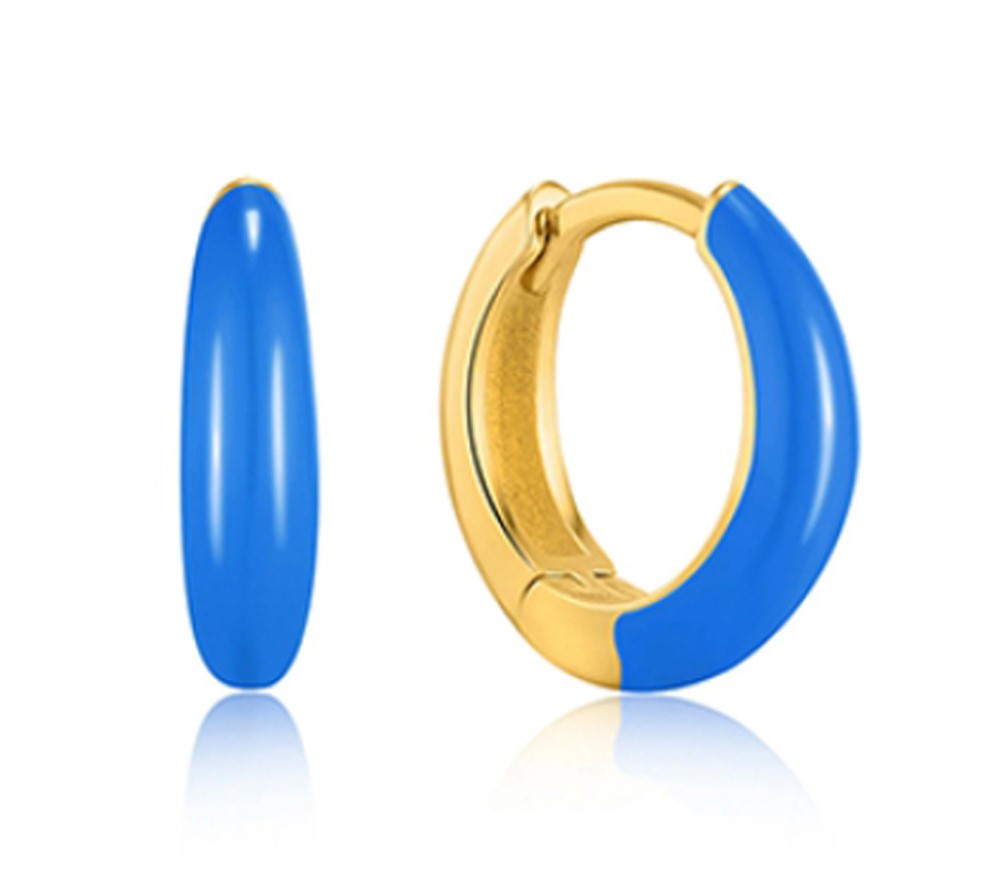 네온블루 에나멜 골드 후프 925 실버 링 귀걸이 E040-02G-NB