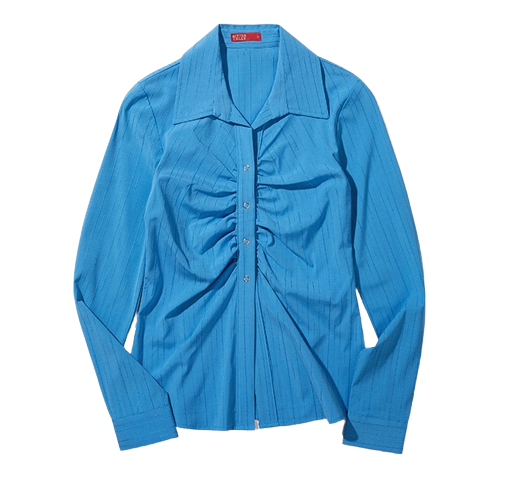 4-Snap Shirring Shirt-Blue