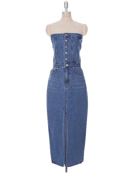 뮤량 데님 튜브탑 슬림 미디 원피스