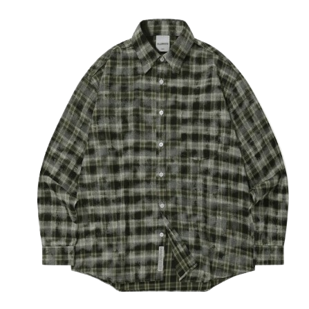 필루미네이트 오버핏 데미지 워시드 체크 셔츠
