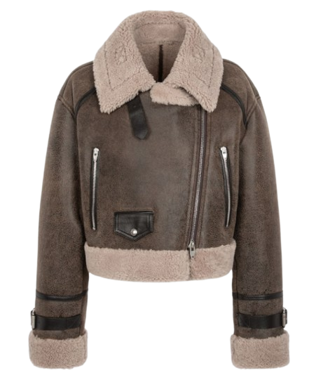 램 크롭 무스탕 라이더 재킷