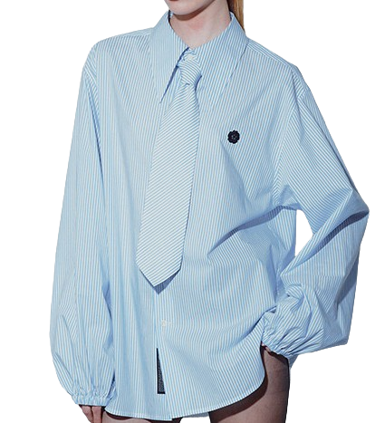 MUNN BLUE STRIPE GATHERED SLEEVE SHIRT