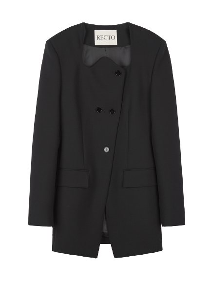 RC SIGNATURE CURVED NECK LONG JACKET (BLACK)