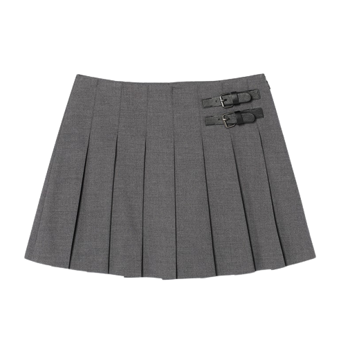 BUCKLE PLEATS MINI SKIRT CHARCOAL
