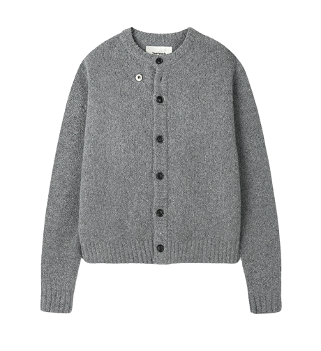 Baby Alpaca Brushed Crew Neck Cardigan_ Melange Grey