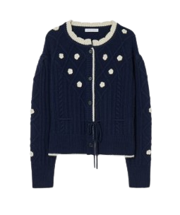 Flower Pompom Cable Knit Cardigan VC239OCD004M