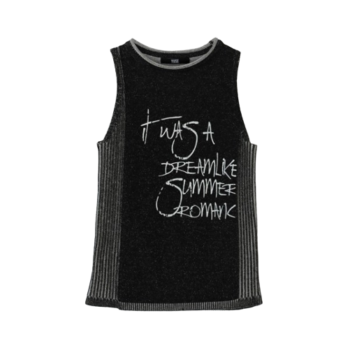 TWO TONE LETTERING SLEEVELESS KNIT TOP - BLACK